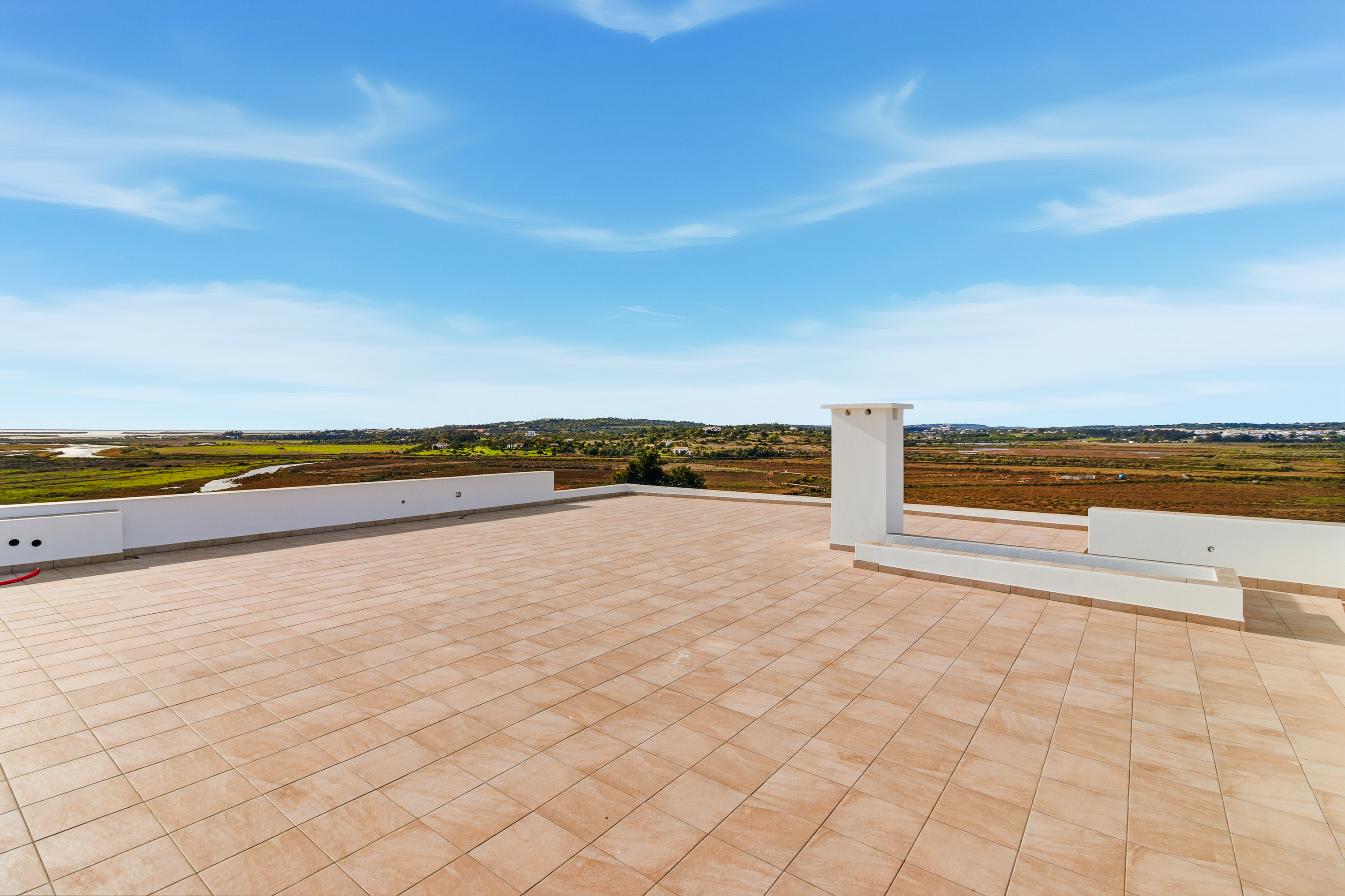 The rooftop terrace offers sweeping views over the Algarve’s picturesque landscape and is pre-installed for a jacuzzi.