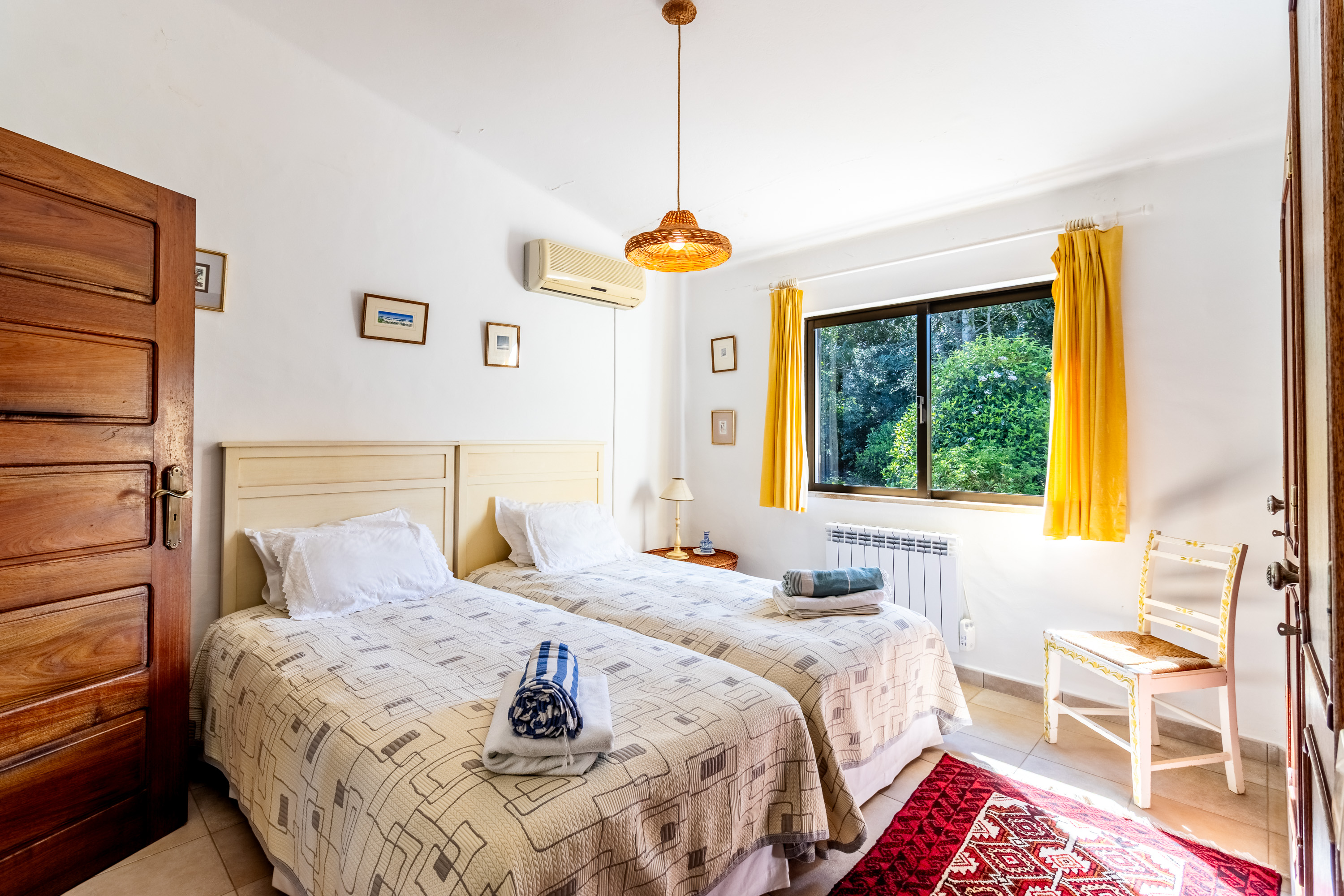 The villa offers three bedrooms. The master suite is spacious and has an en-suite bathroom with shower, and a walk-in closet. The other two bedrooms are also spacious – one is en-suite, the other uses the family bathroom. The high ceilings throughout the property are a beautiful architectural feature and enhance the sense of space and quality throughout the home. The property also benefits from air-conditioning throughout as well as electric heaters, ensuring comfort in all seasons.