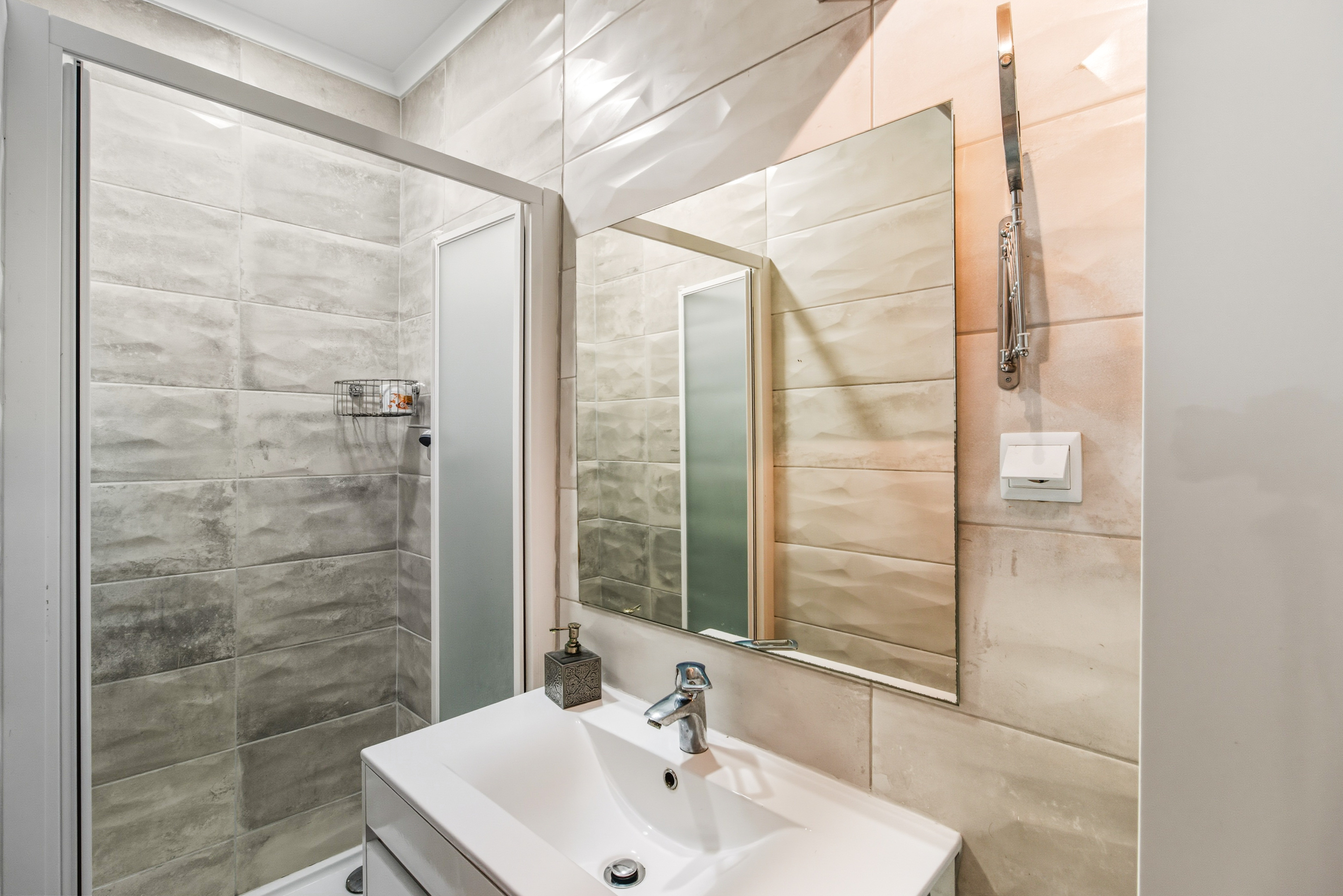 Upstairs, you’ll find the master bedroom with a convenient built-in wardrobe and dressing area, a second bedroom with fitted storage and access to a quaint balcony, and a modern bathroom with a shower. There is also an additional third bedroom or home office and opens onto a bright enclosed balcony where the laundry area is discreetly tucked away.