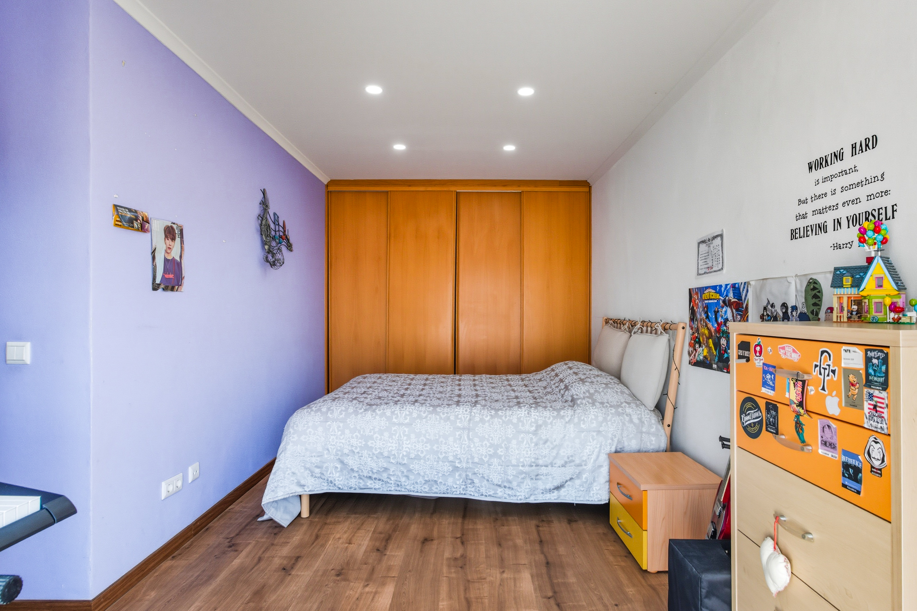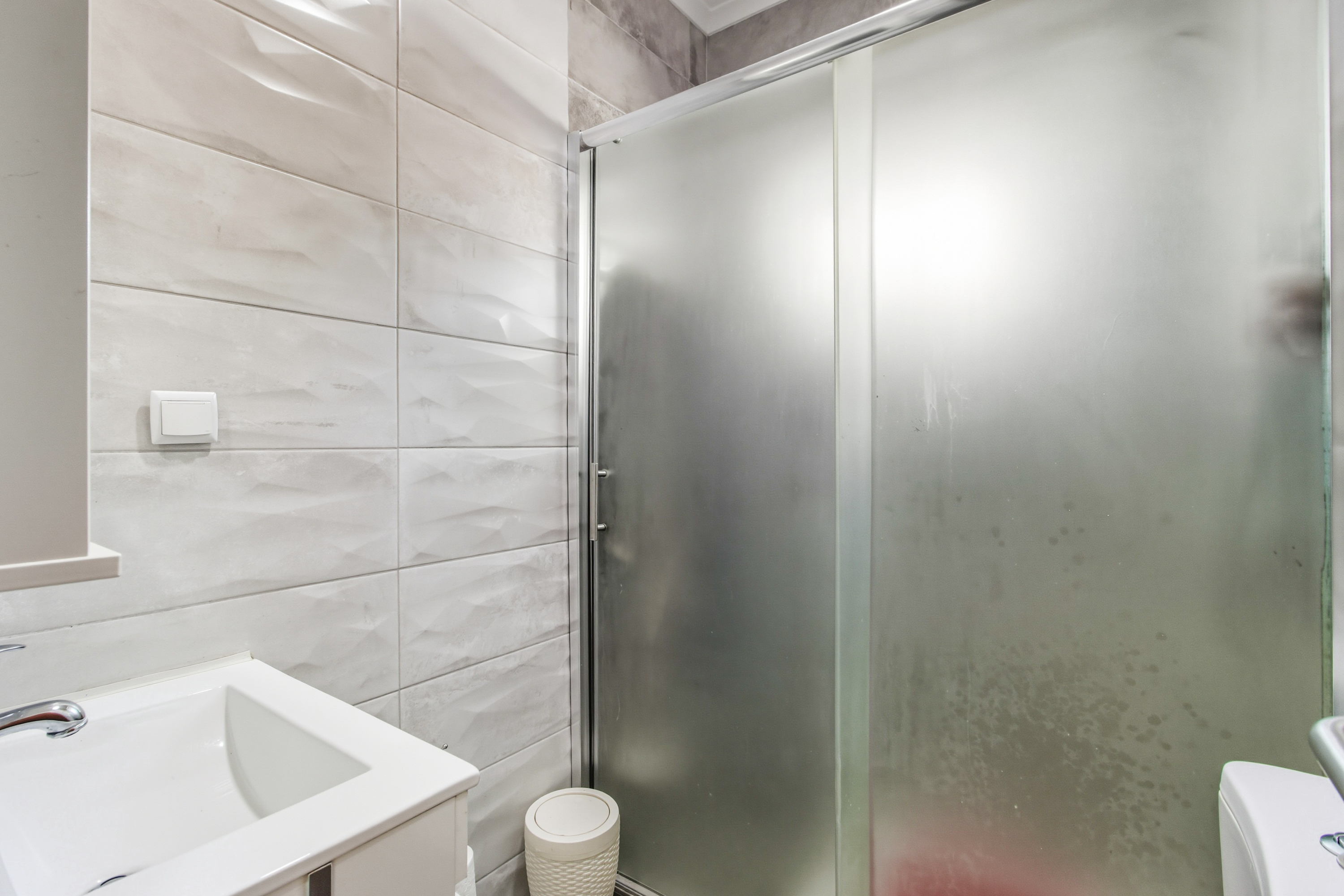 The interior features wood flooring throughout (except in the bathrooms), complemented by false ceilings and PVC double-glazed windows with mosquito screens, ensuring excellent insulation and soundproofing.