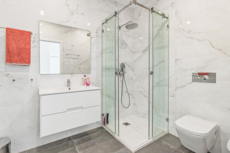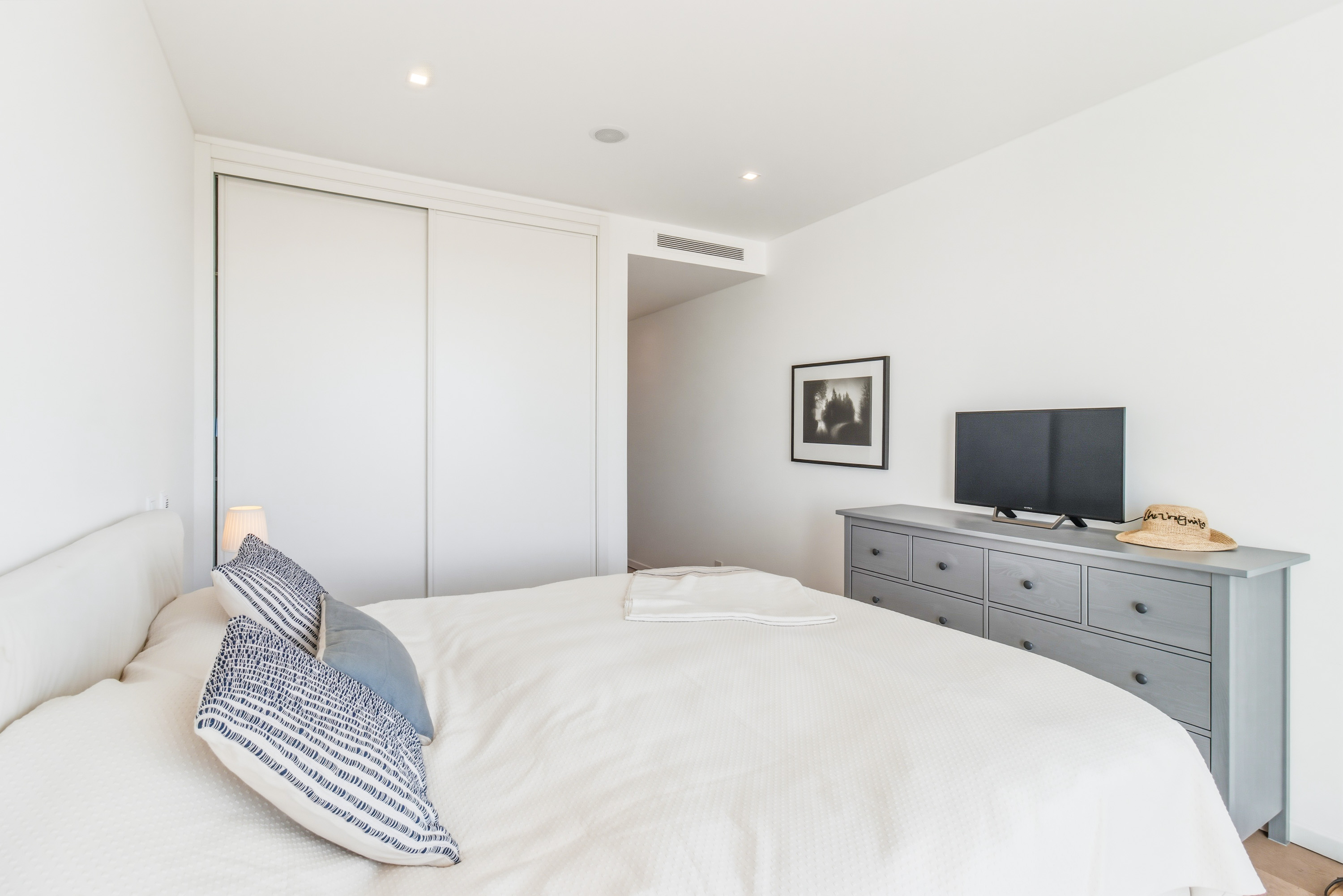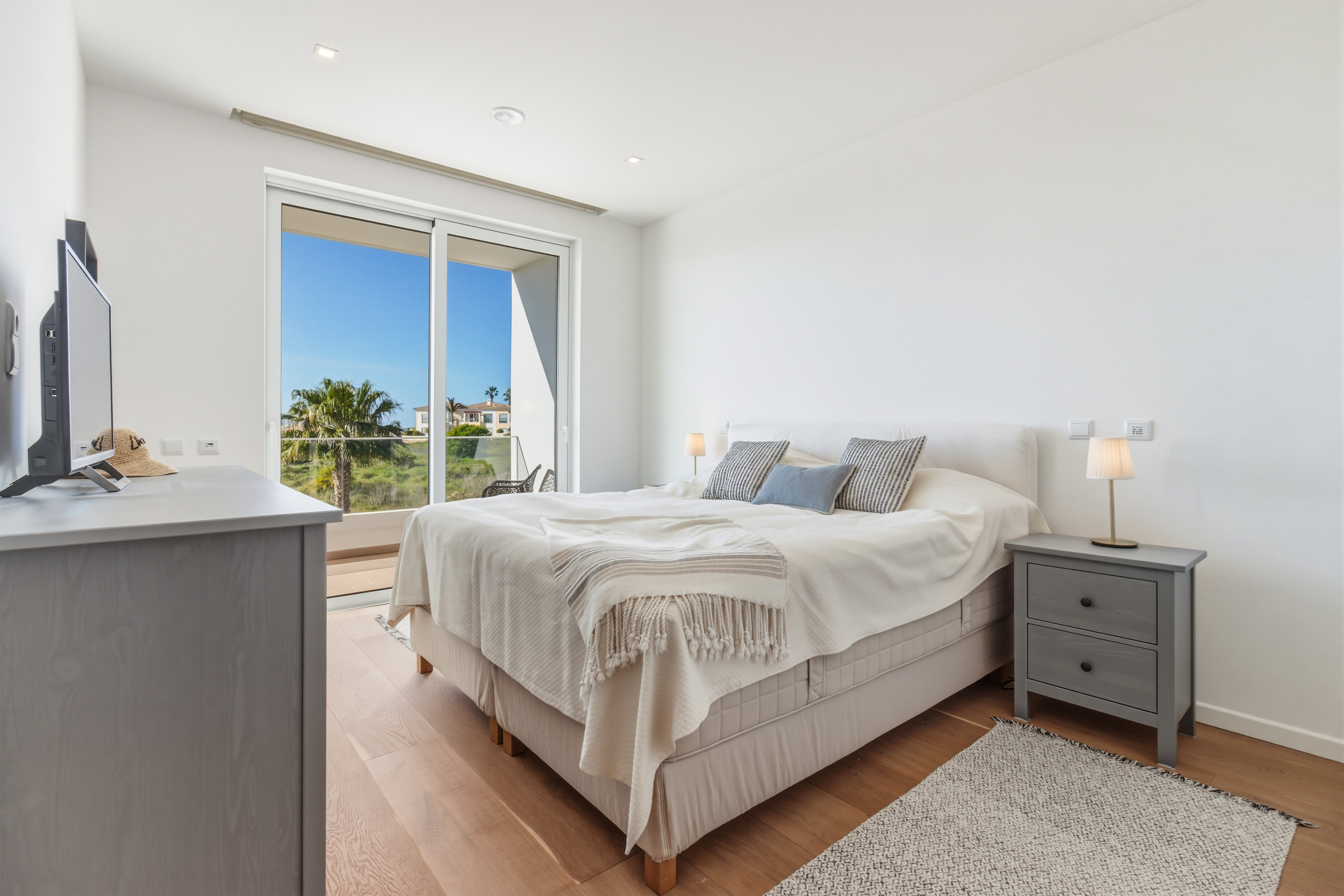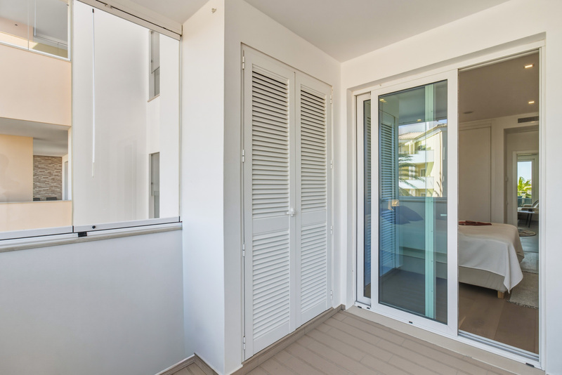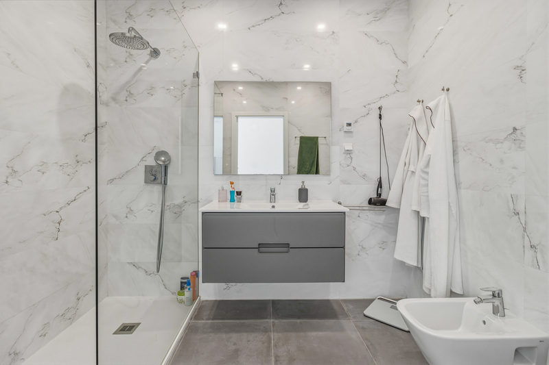 La chambre principale comprend des armoires encastrées, une salle de bains attenante élégante et dispose d’un accès direct à la terrasse principale. Les deux autres chambres ont chacune accès à leur propre terrasse privée et partagent la salle de bains familiale.