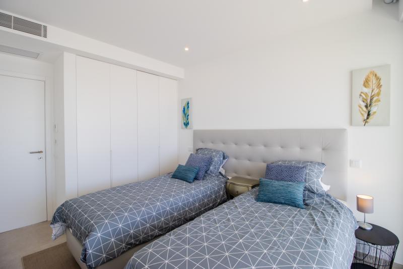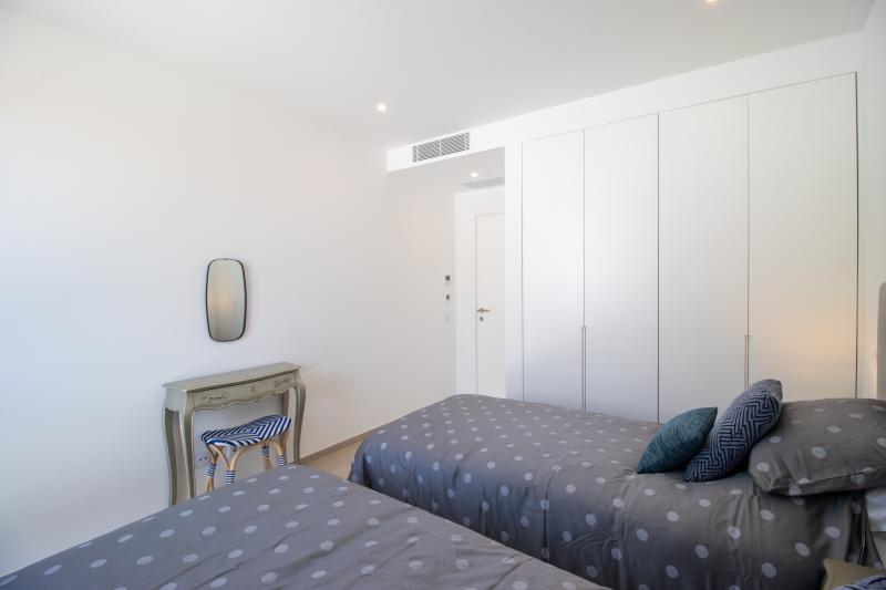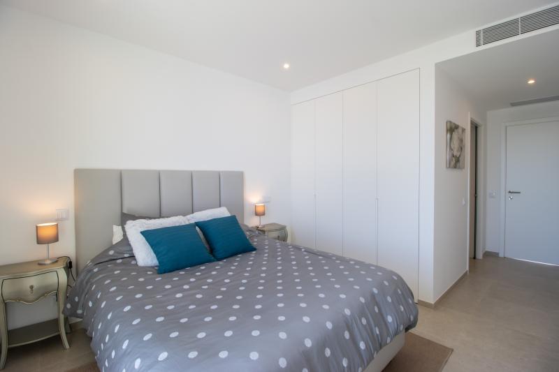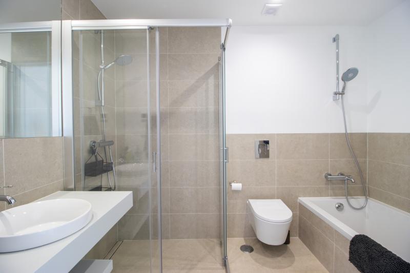 À l’intérieur, l’agencement ouvert est lumineux et accueillant, avec de très grandes portes-fenêtres qui inondent le salon de lumière naturelle et communiquent directement avec la terrasse. La cuisine entièrement équipée est dotée d’appareils électroménagers modernes, notamment une plaque de cuisson et un four électriques, un lave-linge et un lave-vaisselle.