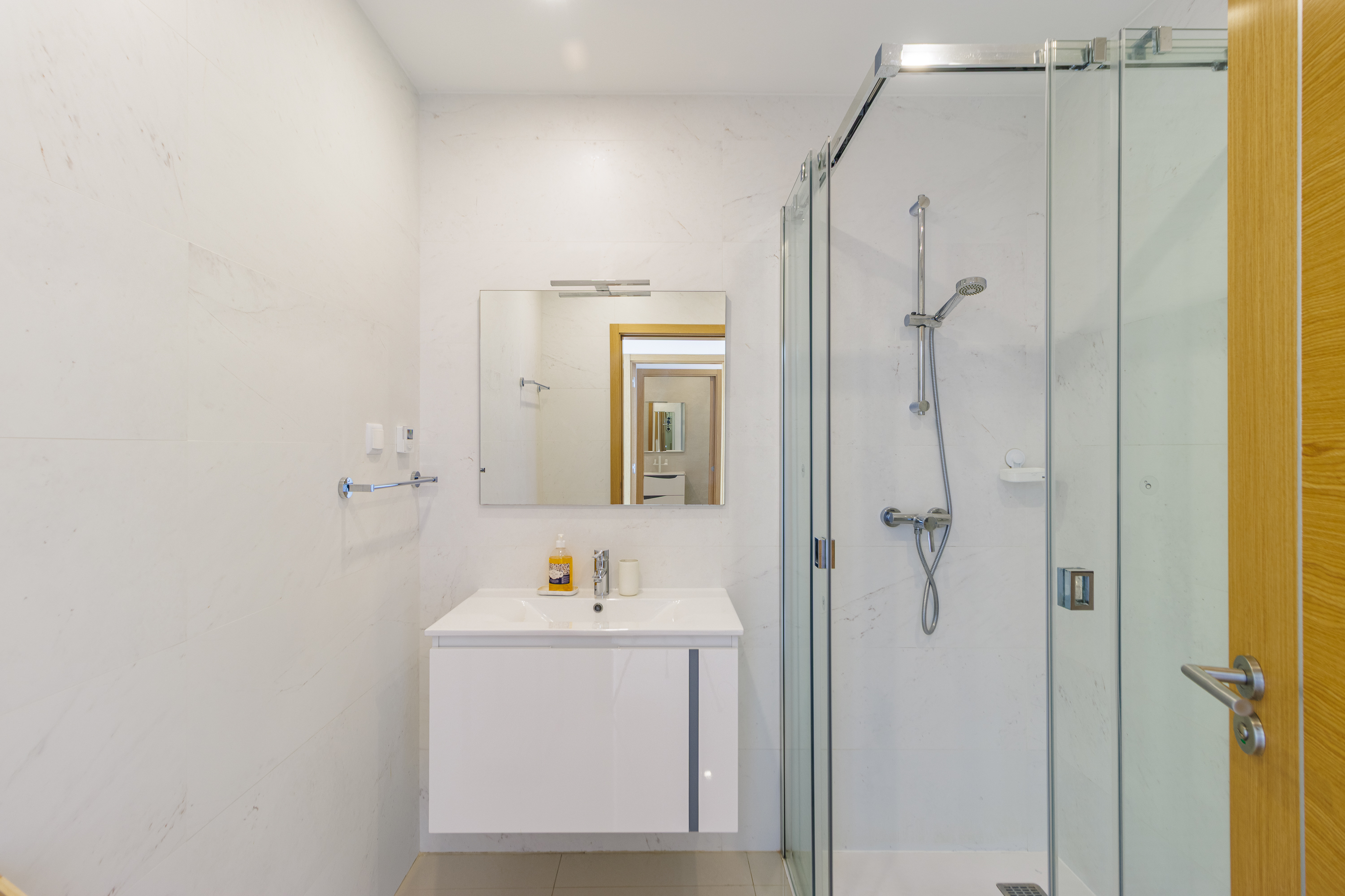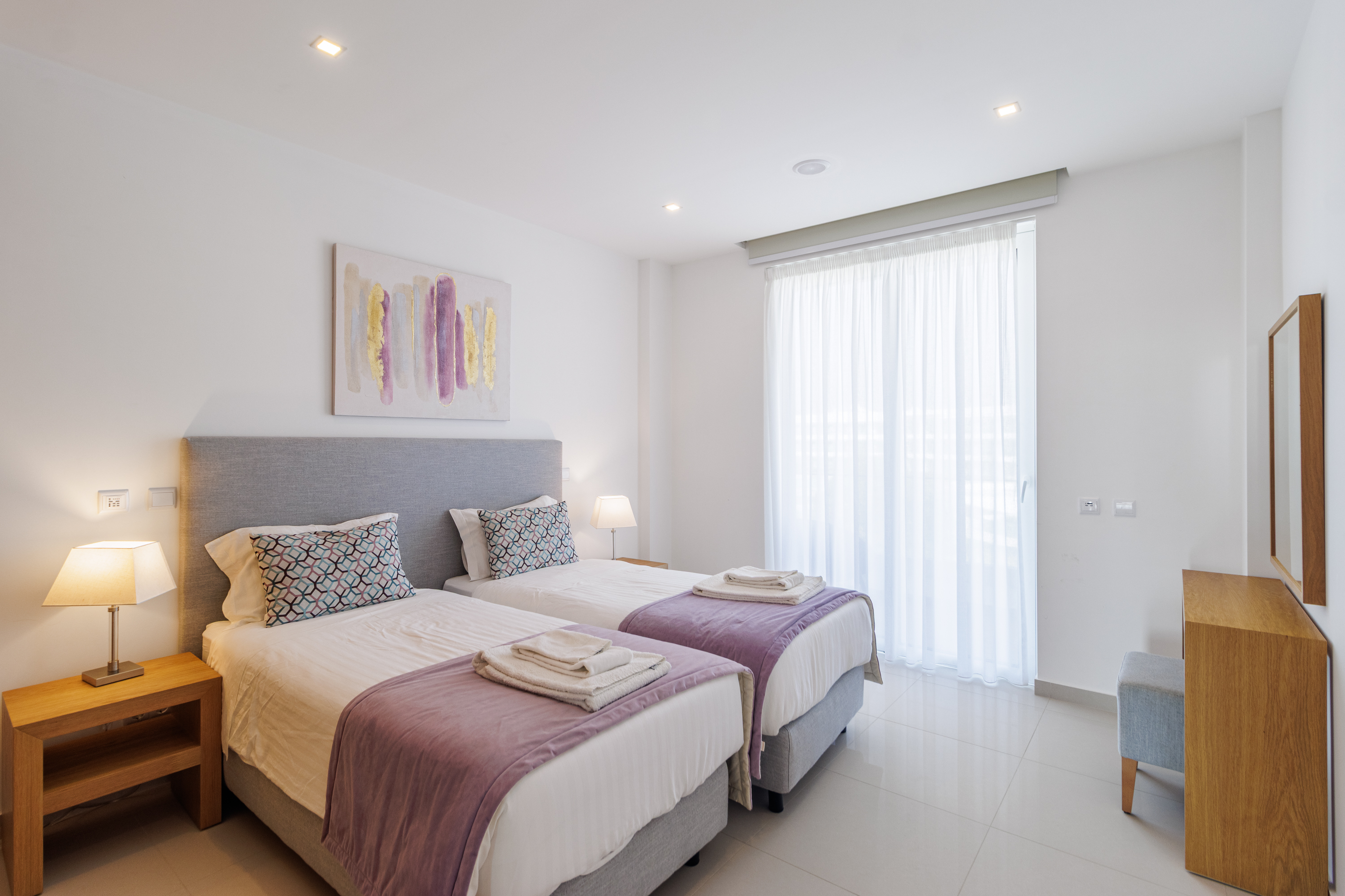 Alla tre sovrummen är generöst tilltagna dubbelrum, och det stora sovrummet har eget badrum. Varje sovrum har direkt tillgång till en andra stor balkong, medan ett elegant familjebadrum betjänar resten av hemmet.