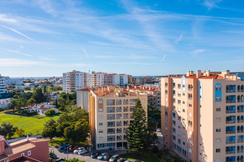 En separat hall leder till sovrumsdelen. Det stora sovrummet ligger till vänster och har vacker havsutsikt över Meia Praia samt en egen balkong – en idealisk plats att njuta av morgonsolen på. På motsatt sida ligger det andra sovrummet, som för närvarande är inrett som ett tvåbäddsrum. Det är rymligt och har inbyggda garderober. Ett familjebadrum ligger bekvämt mellan de två sovrummen.