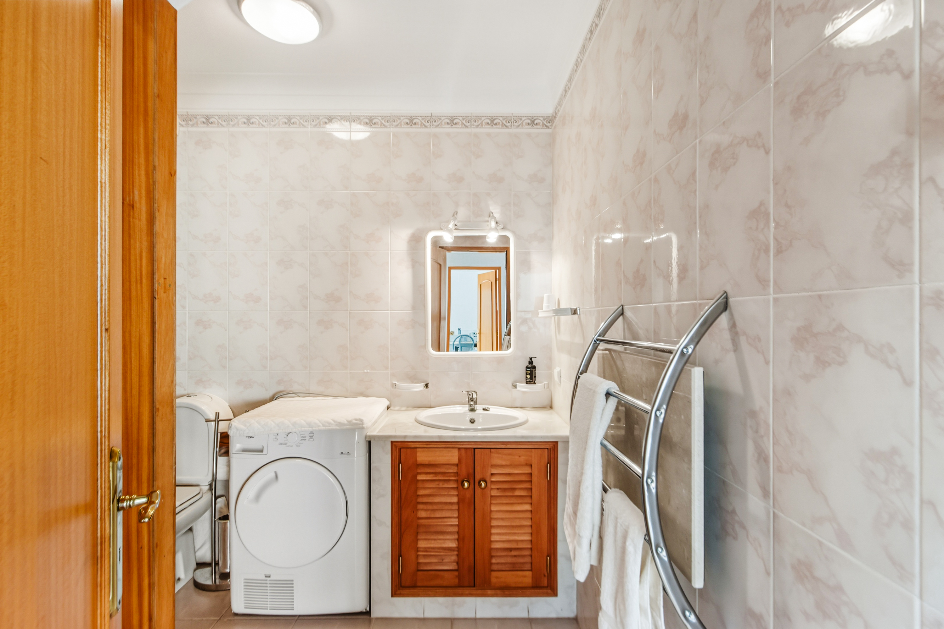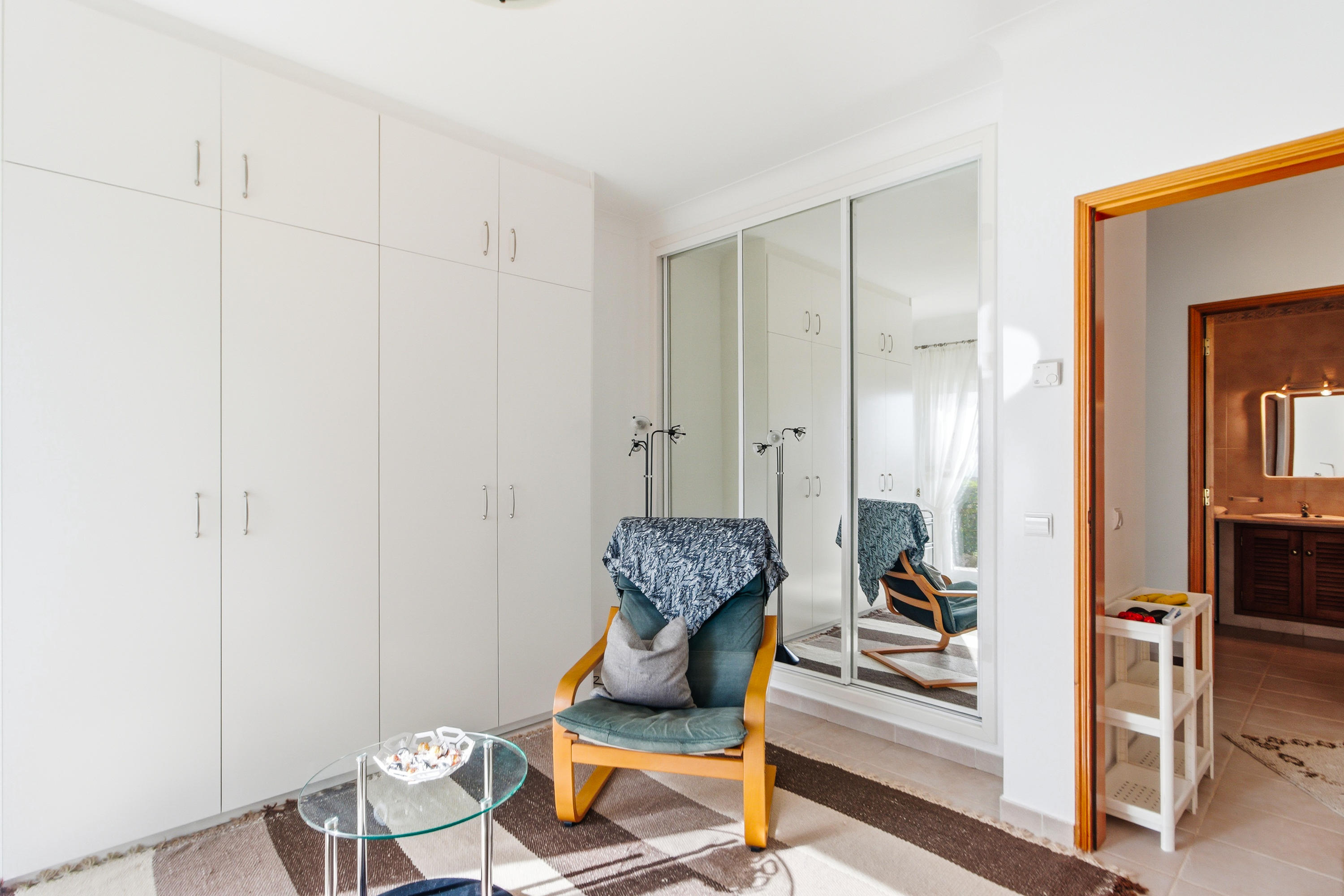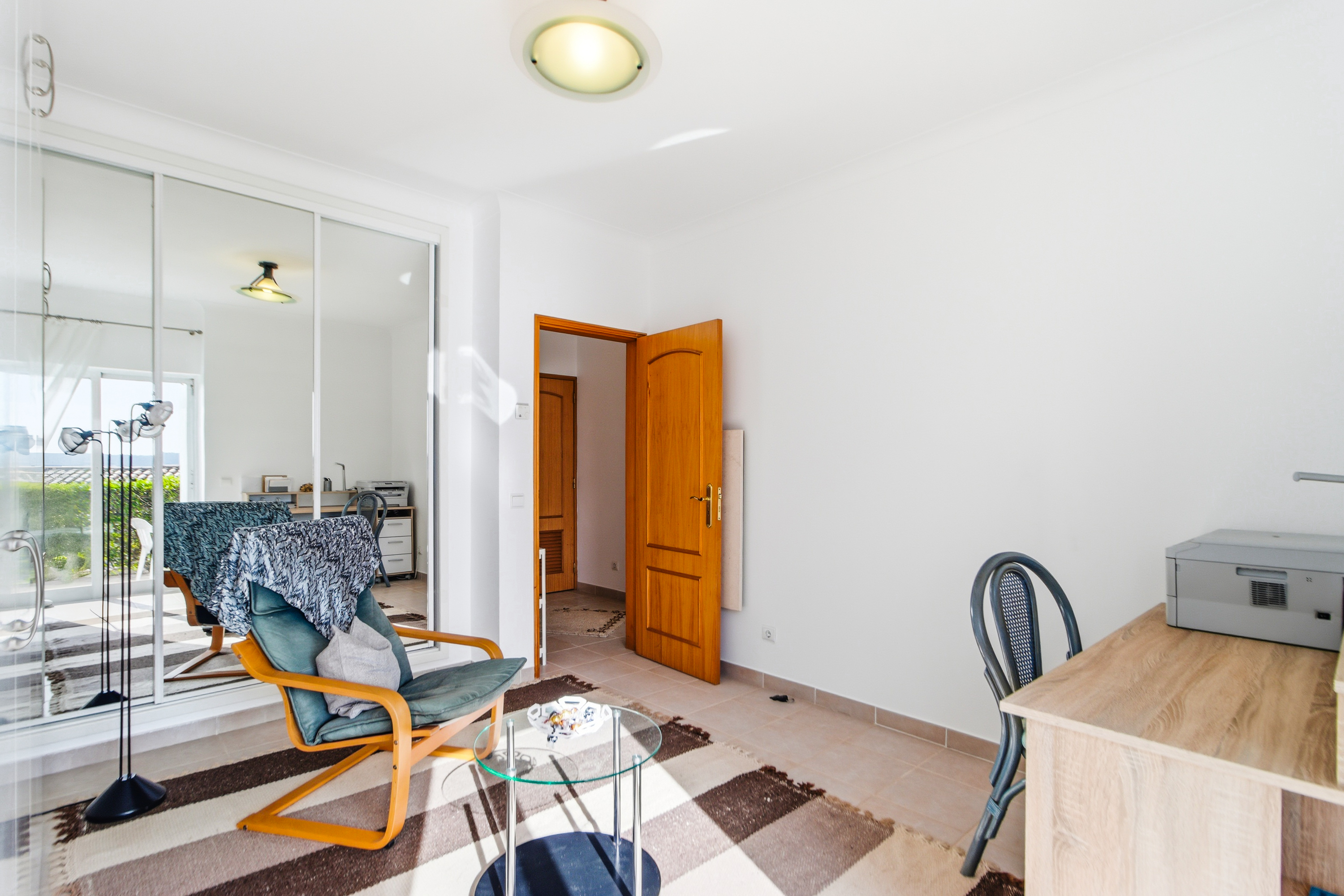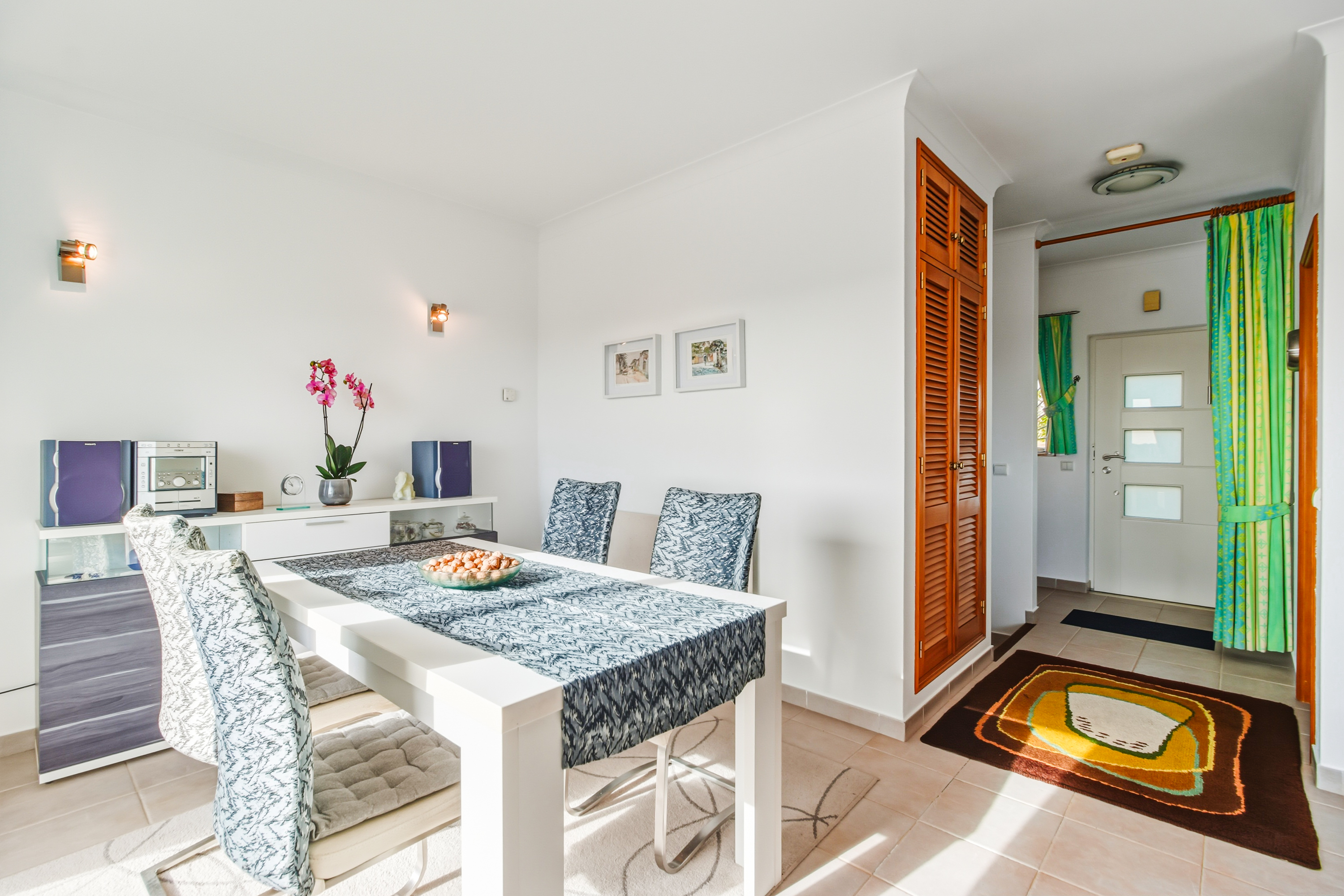 Detta radhus är designat för bekvämt boende året runt och avkopplande semestrar i Algarve. På entréplanet finns ett ljust vardagsrum och matplats med öppen spis och skjutdörrar som leder ut till en solig balkong mot söder. Här finns även ett fullt utrustat kök och en gästtoalett.