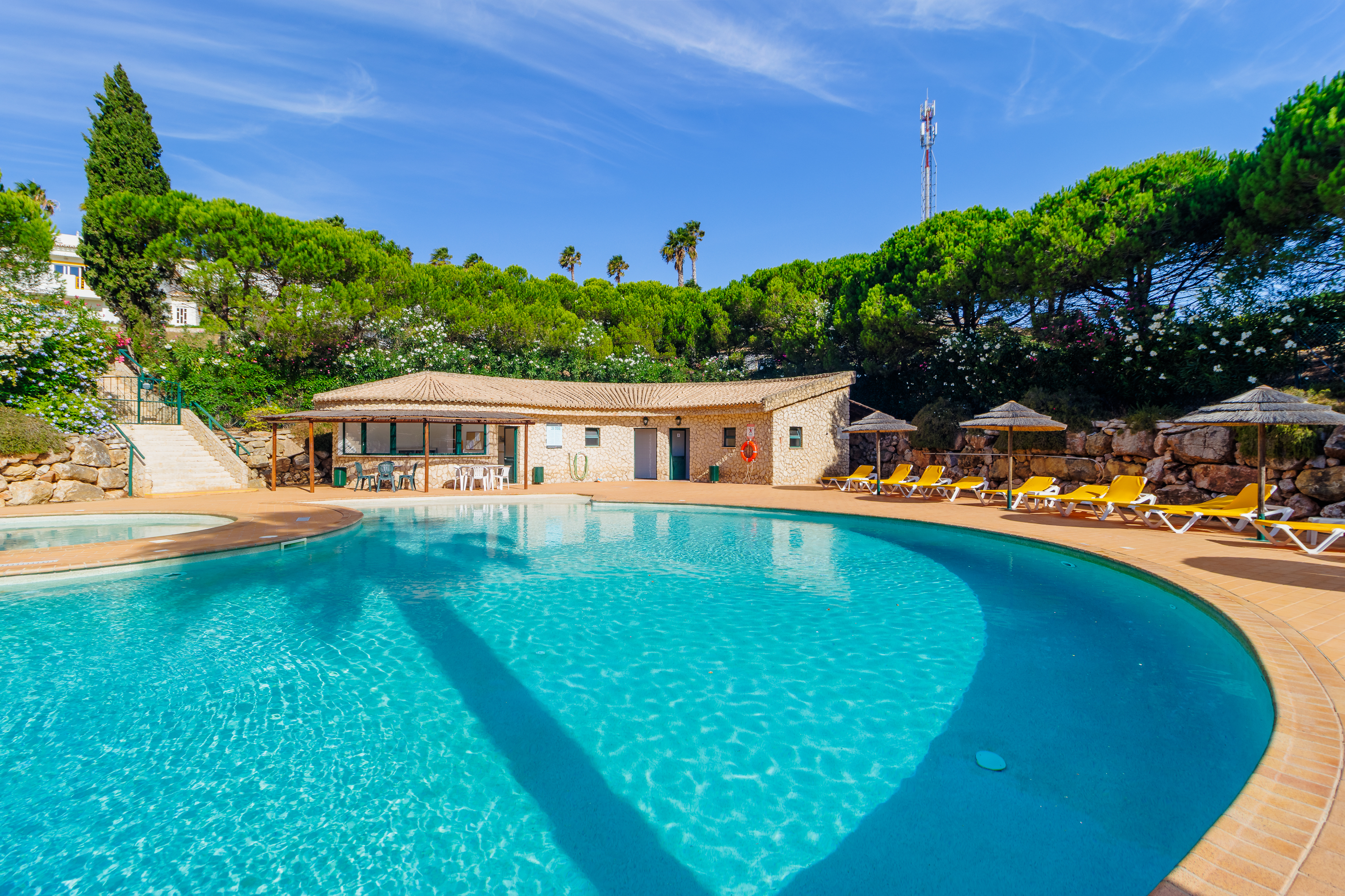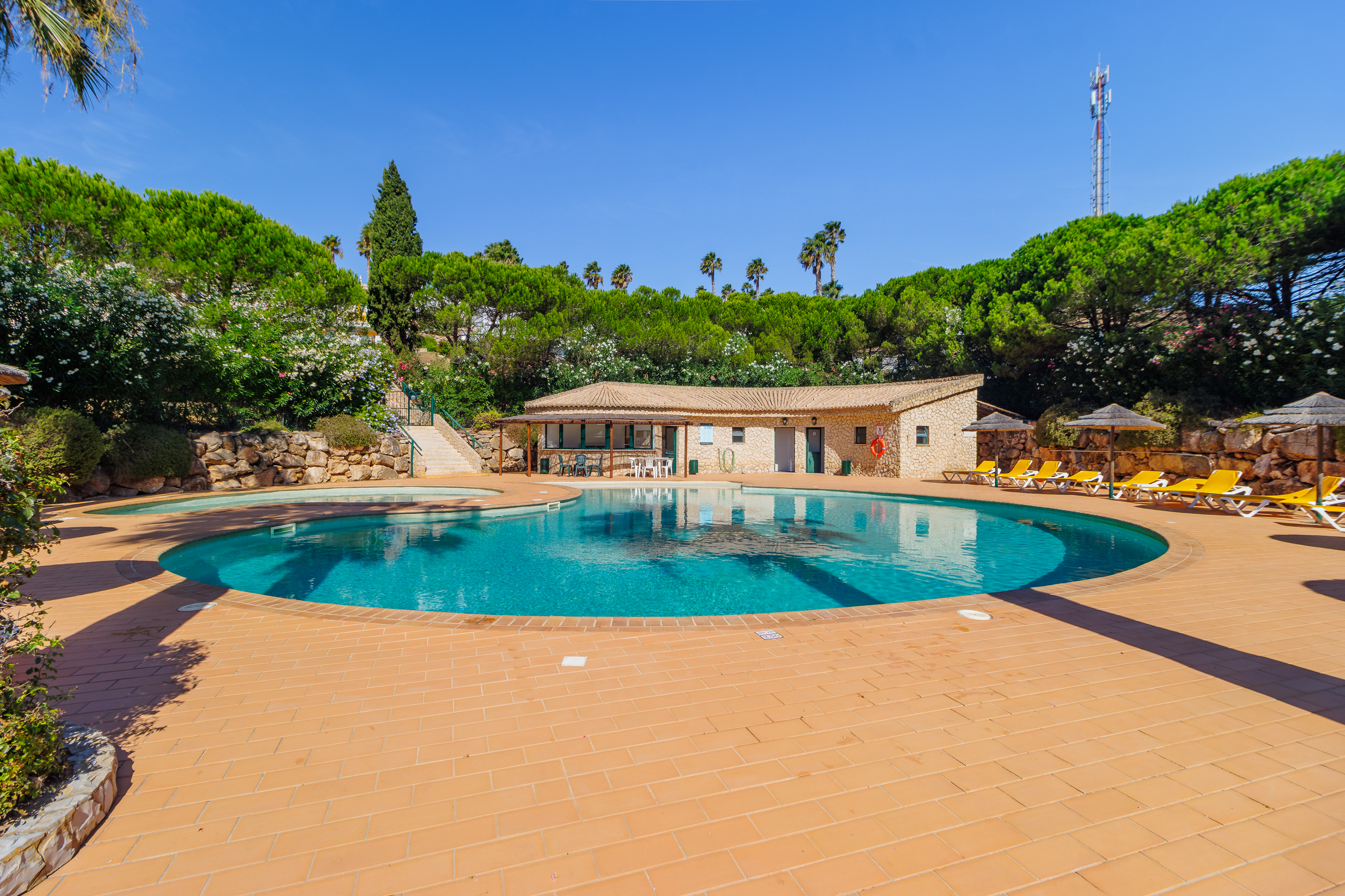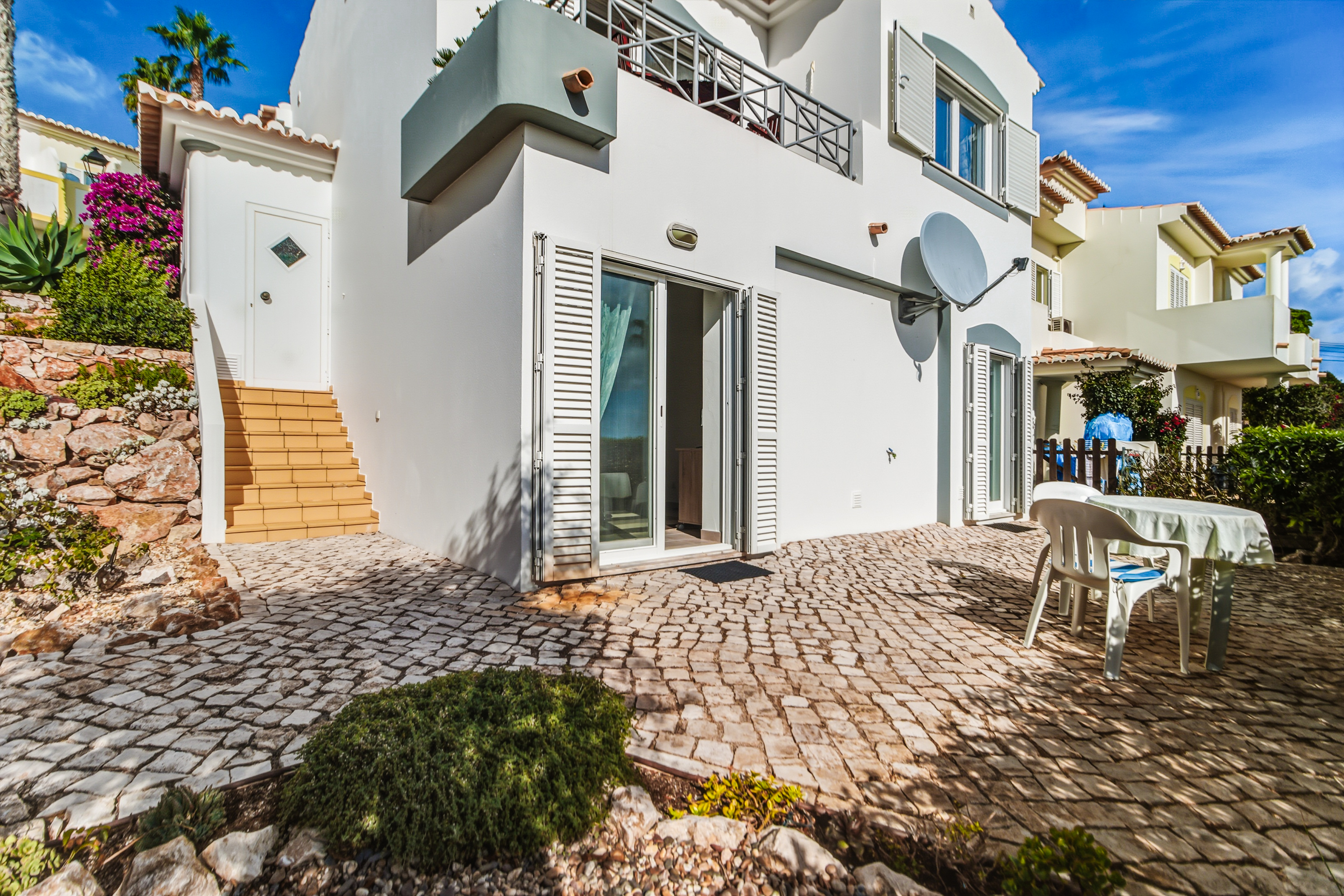 Bostaden har tillgång till en stor gemensam pool omgiven av grönskande trädgårdar — den perfekta platsen för att njuta av Algarves solsken. Lokala bekvämligheter som mataffär, caféer och restauranger finns inom gångavstånd i Budens, och den gyllene stranden och restaurangerna i Salema ligger bara 5 minuters bilresa bort.