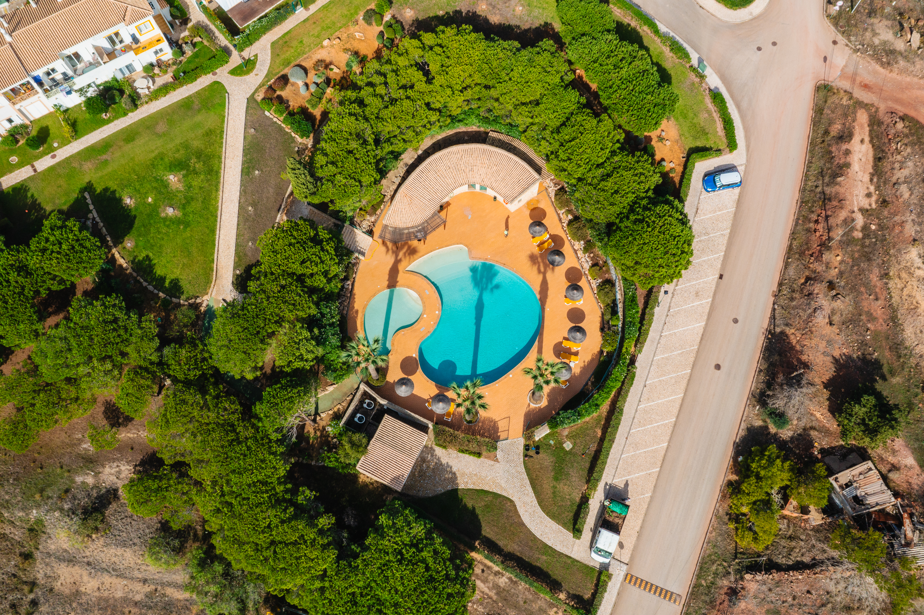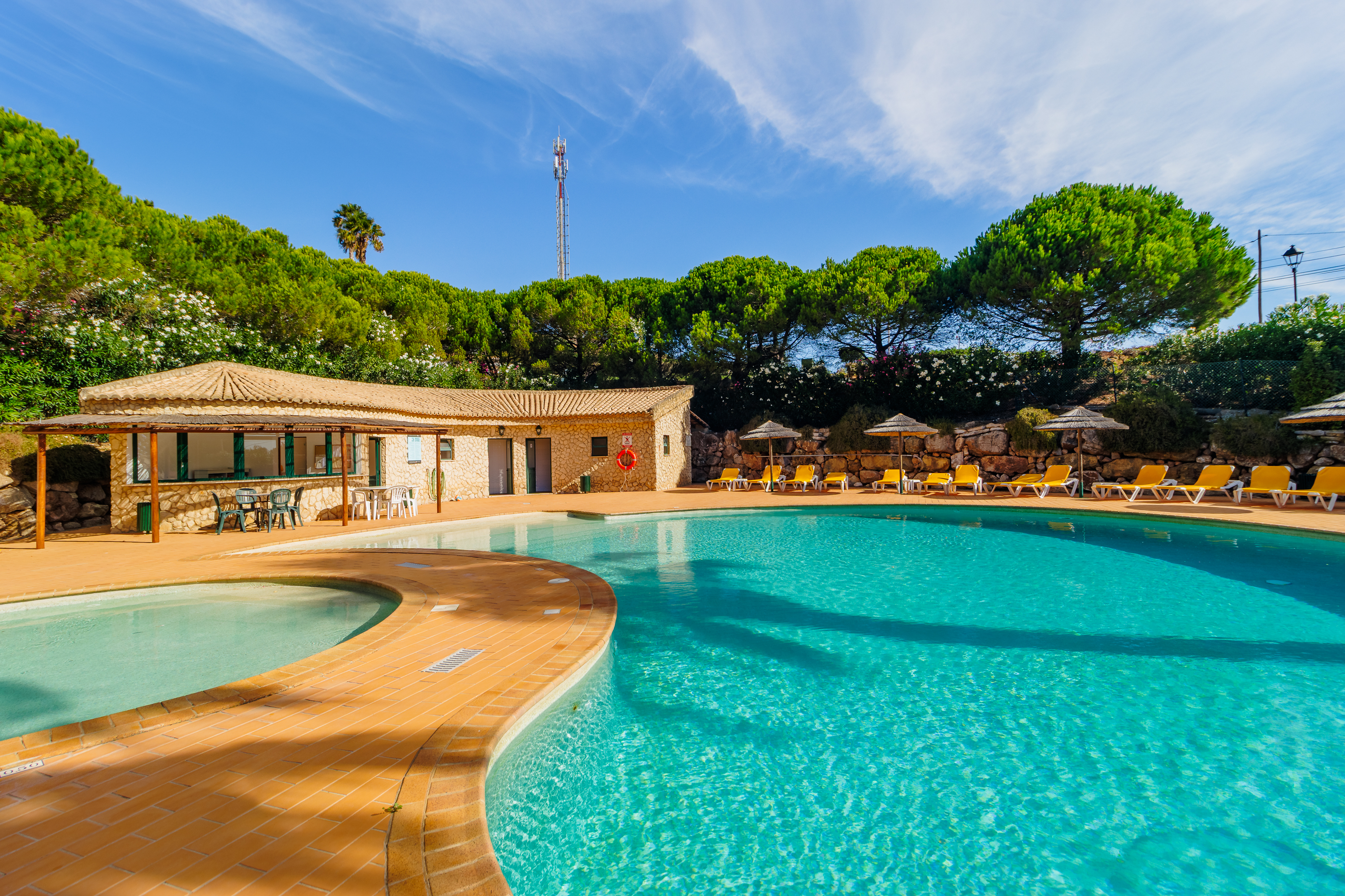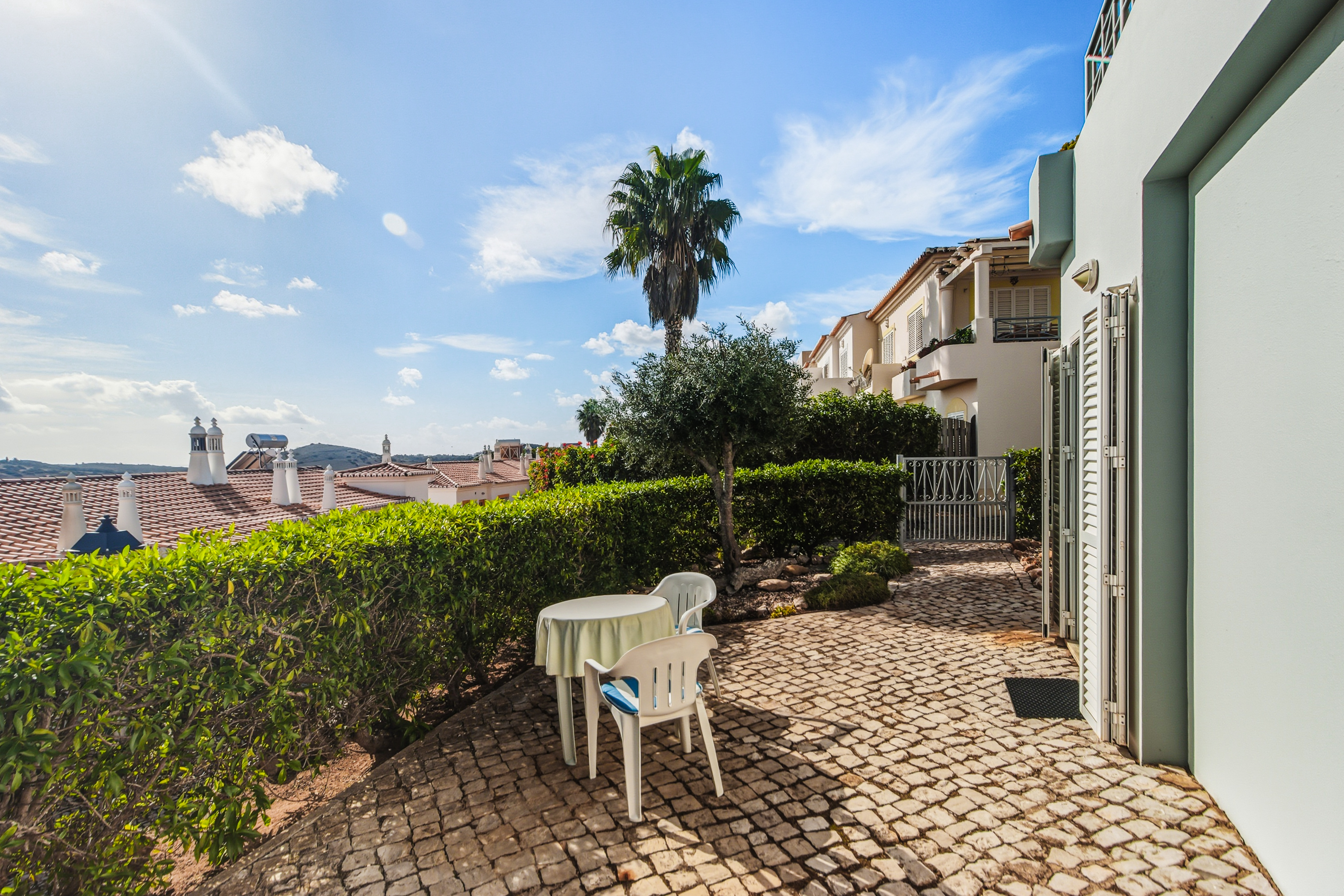 Bostaden har tillgång till en stor gemensam pool omgiven av grönskande trädgårdar — den perfekta platsen för att njuta av Algarves solsken. Lokala bekvämligheter som mataffär, caféer och restauranger finns inom gångavstånd i Budens, och den gyllene stranden och restaurangerna i Salema ligger bara 5 minuters bilresa bort.