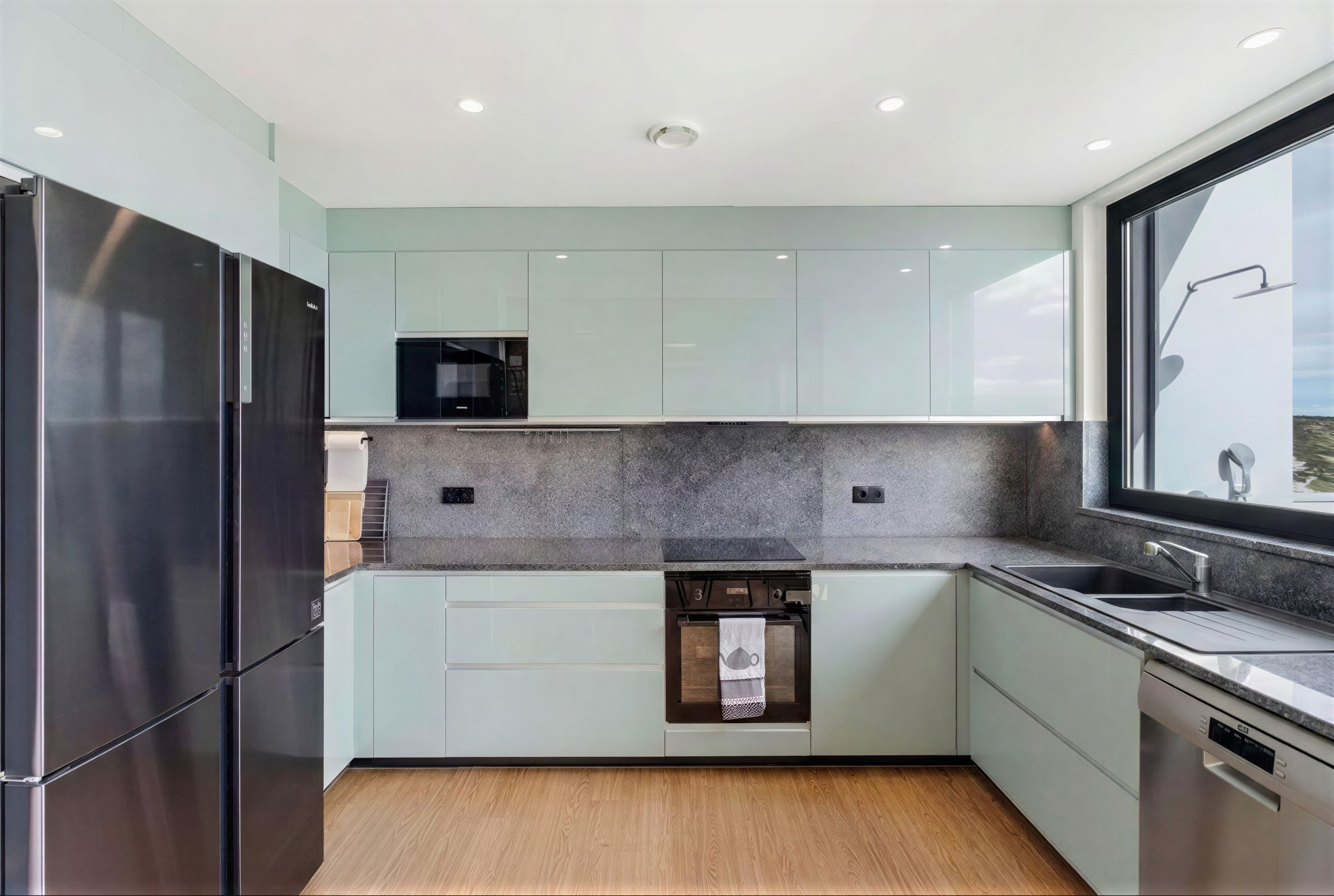 När du kliver in på entréplanet möts du av ett ljust och inbjudande vardagsrum där stora fönster öppnar upp mot en rymlig balkong med utsikt över havet — den perfekta platsen att koppla av och njuta av den fria utsikten.