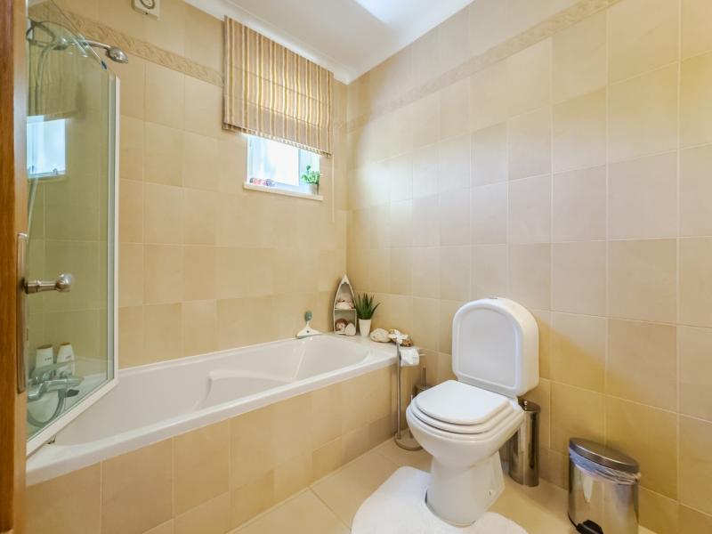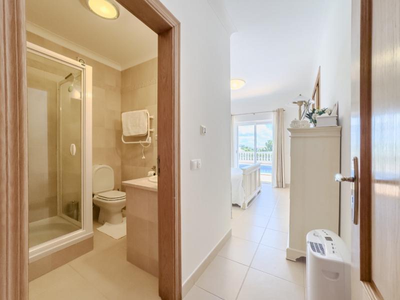 På nedervåningen finns 3 generöst tilltagna dubbelrum, alla med eget badrum och inbyggda garderober. Dessa sovrum vetter direkt mot den inbjudande poolterrassen, som också kan nås från den övre nivån.